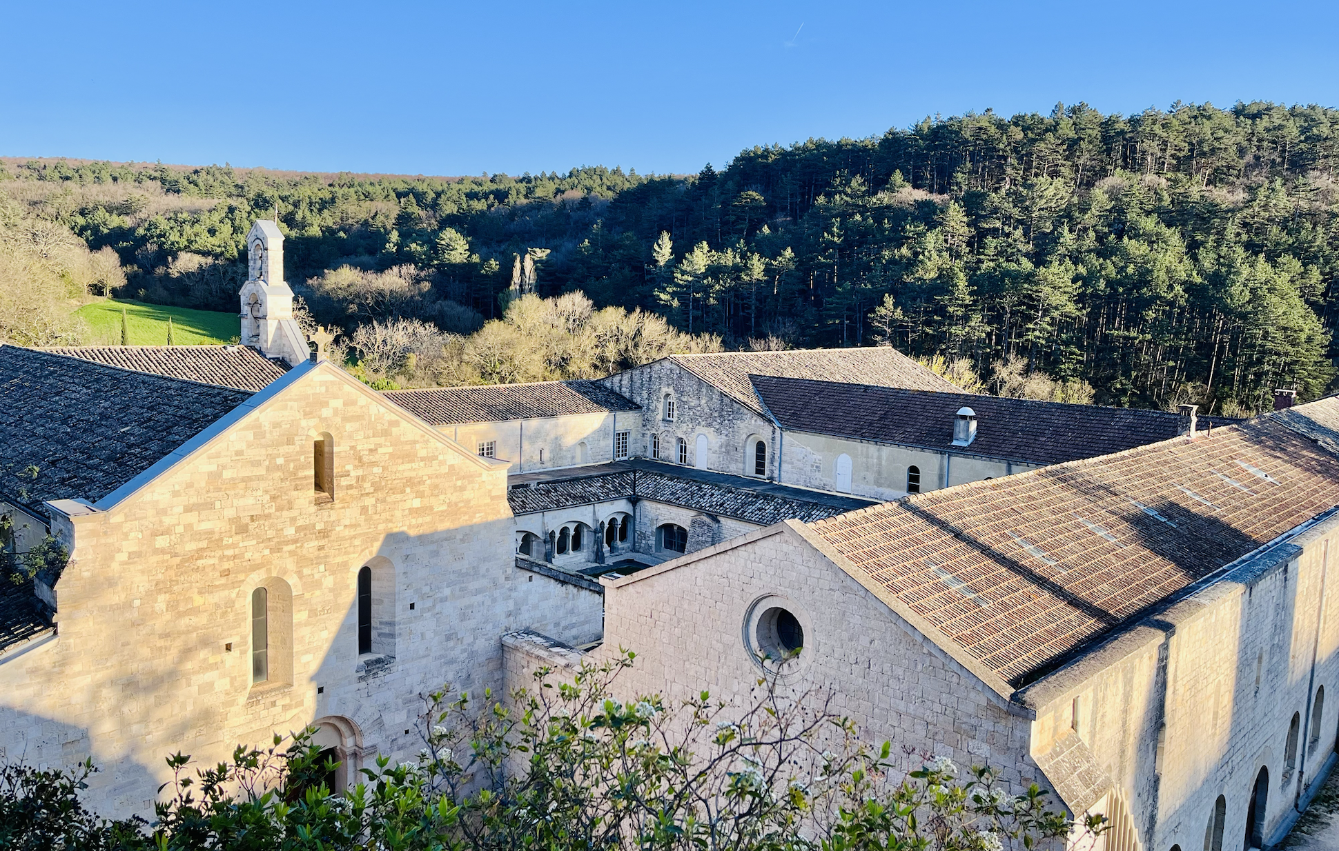After a week in the French Alps with my youngest son, where he skied and I wrote, and together we had deep conversations about truth, I discover monastic life in Provence. First, I spent four days with Dominican sisters, who sang very beautifully, and today I have arrived at Cistercian monks, who don't sing as beautifully but have an abbey in a dizzying domain, surrounded by pristine nature, bathed in Provençal sunlight. I feel like I'm in a book by Dan Brown.